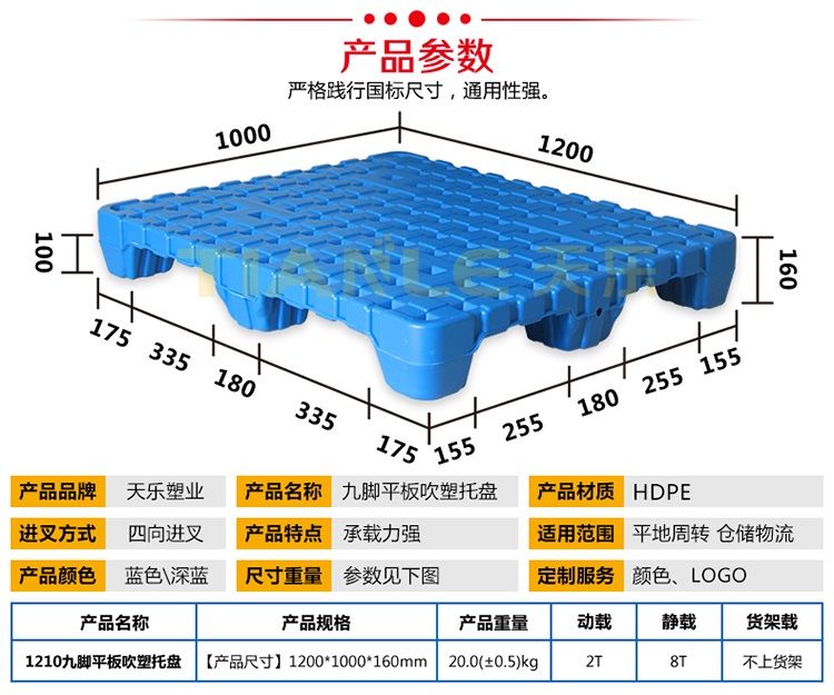 【產(chǎn)品名稱】九腳平板吹塑托盤