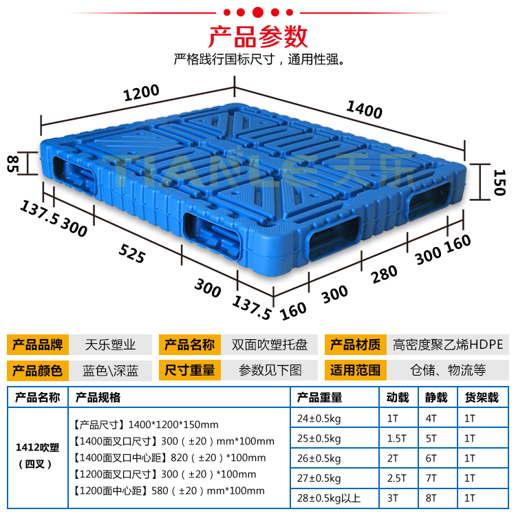 型 號(hào):吹塑雙面托盤