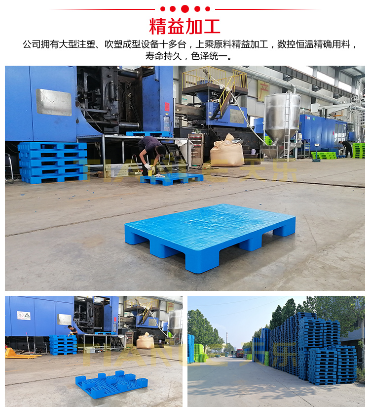4、托盤四面進叉,適合平地、堆垛、貨架、叉車周轉貨物使用。